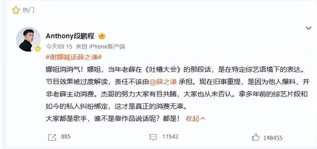 全网皆在等薛之谦谈歉。